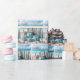 Turcitpumpor kapslas i sanden nära en rustik trästaket på en strand, med det vibrerande havet och himmel skapande en serenbakgrund