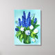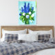 En halveringstid för digitala stillastående i koboltblåa hyacinter och vita hydrangeer i ett glas vas, mot en blek blå bakgrund