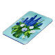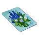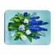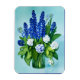 En halveringstid för digitala stillastående i koboltblåa hyacinter och vita hydrangeer i ett glas vas, mot en blek blå bakgrund
