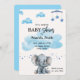 Blåinbjudan till Cute Elephant Surprise Baby Showe Inbjudningar