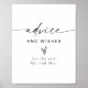 Bröllop och önskemål-tecknet har ett modernt bohemskt handskrivet typsnitt och en enkel minimalistisk utformning och ord "råd och önskemål för den nya ledamoten och fru". Den enkla kombinationen svart och vitt färg gör det till ett tillägg till perfekten i alla händelser. Använda som poster för bröllopsmottagning, möhippa, par dusch etc.