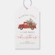 This Christmas gift tag features a cute red rustic pickup truck with holiday greenery and florals on top paired with a fun and minimalist font combination. This red and green holiday tag is perfect for your seasonal gifting.