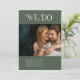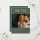 Modern bröllop spara datum-kort med minimal layout med "Vi gör" i fet stil ovanför ditt landskapsobjekt. Baksidan har ett foto från porträtt tillsammans med ytterligare information. All inslag är i större grönt och elfenben och kan ändras i designredigeringen i verktyg. Denna enkla elegant som sparar datumkortet är underbar för ett informellt eller formellt bröllop.