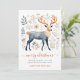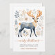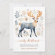 Rustic folkart stil julkort, med en dekorerad hjort omgiven av löv i blått och rost. God jul i skripttypografi. Lägg till din egen vers och namn. Finns i utskrift, som en digital nedladdning, eller både och!