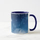 För alla älskare av stjärnor och ljusa färger beskriver muggen för dig ett vackert blått stjärnor himlar och ett halvmånsfärande måne.