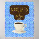 Denna poster har en hett kopp av kaffe mot en bakgrund av charmerande, traditionella mosaikplattor. Den tidlösa designen lyfter fram värme och smak, skapar den som en snyggt i ditt kök, matsalen, frukostdisken, kafferook eller till och med kontorspaneler. Den enkla men kraftfulla sloganen "Vakna upp till kaffe" resonerar med kaffeentusiaster och inspirerar till en uppfriskande början till dagen.