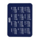 Årskalender för 2025 med vita siffror på marin blå bakgrund tryckt på små, flexibla magneter
