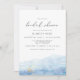 Inbjudningskort för möhippan har en himlar blå vattenfärgsdipp vid grund med guld stänk och en minimalistisk utformning av eleganten. Den här inbjudan är perfekten som tillägg till din dammiga, blå romantiska möhippa firande.