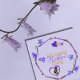 Grattis på mors dag, ett vackert mauve kort med målade blåklockor ( campanula ) som pryder en åttakantig ram.