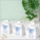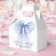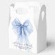 Elegantens möhippa föredrar presentlådor med en blå coquette-buskfärg, "med kärlek och tack" i ett modernt chic, och namn i bruden och duschdatumet i ett enkelt brev.