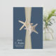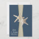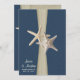 Söt stjärnfisk och burlap-design skapar ett unikt utseende på din strand eller målbröllop. Klassiskt marint blått och naturligt elfenben färg ger ett unikt utseende. Inbjudan är helt tryckt. Det finns ingen riktig "burlap" eller "svält" fäst.