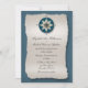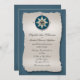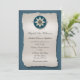 Blyinbjudningar till elegant nautisk vintage-stil med blå kompass och torn-kant beige papper illustration över blått.