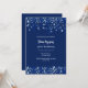 En modern elegant och inbjudan. En marin blå bakgrund dekorerad med blå konetti. Anpassa och lägg till namn och detaljer. Vit text.