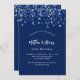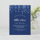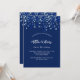 En modern elegant och inbjudan. En marin blå bakgrund dekorerad med blå konetti. Anpassa och lägg till namn och detaljer. Vit text.