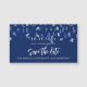 A Spara datummagnetiskt kort för en 40:e (eller någon annan ålder) födelsedagsfest. En marin blå bakgrund, dekorerad med konetti. Texten: Spara datumet skrivs med ett stort trendig-handskript i stil.