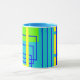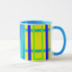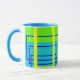 Den här söten och det ljusa mugg har mina originalbilder av linjer och former i blått, gult och grönt. Den har en abstrakt stil och påminner om konstens retro Mondrian-era. Insidan och handtaget har en harmoniserad ton akvblått. Det här är 11 uns mugg, bara den perfekt som är storlek för ditt bryggkaffe eller te - eller till och med hett choklad! Det skulle vara en underbar gåva, och man kan lägga in paket kaffe, tepåsar eller hett choklad. En annan presentidé är att lägga en liten växt i den för att göra extra speciell