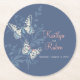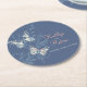 Vackra blommigtar med två konstfjärilar och skugga i mörk blått rosor med korall orange, kräm på en muterad mörk blått bakgrund bröllop pappra underlägg. Ett underbart personligt tillskott till bord i bröllop eller till drycker efter bröllop. Anpassa med din brud och brudgumms namn. Perfekt för fjärilsmemnade eller trädgårdsbröllop. Sarah Trett målade på ett unikt sätt i vattenfärg och utformade för www.mylittleeden.com