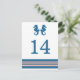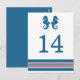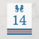 Postkort för elegant och det klassiska Bordsnumret för sjöhästen Bröllop med ett par enkla sjöar och en rad rand i mörkens marinblått och korall. Det är enkelt att anpassa det här sjöstrandkortet med bord med information om bröllop. Om du vill ha fler anpassningsalternativ klickar du på knappen Anpassa.
