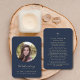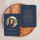 Detta enkla minneskort kan ges som en keepsaké på en Firande av Life eller begravningstjänsten eller skickas som en speciell hyllning till dem som inte kunde närvara. Anpassa det här kortet med ett favoritfoto av din avskurna och ditt val av bön eller dikt på baksidan av kortet i elegant guld skripttypografi på en klassisk marin blå bakgrund. Enkel att anpassa.