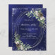 En marin blå, ojämn färgad som dekoreras med koner, vita bär och grönsaksbär. En faux silver oval ram och glitter. Anpassa och lägg till informationen. 1 lakan = 1 inbjudan tryckt kant till kant.