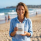 vattenfärgsmålning av en blå krabba med orange på stranden