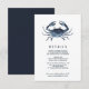 Designad för att matcha våra inbjudningar och tillbehör till Seahorse & Starfish bröllop. Det här informationskortet för sjömansväret i chic bröllop innehåller en illustration av vattenfärgen krabba i vintage i stil i hand plockade i sapphire blue. Använda mallen fält som du vill anpassa med gästinformation, hotell och webbplatsinformation. Perfekt för strand, sommar eller nautiska bröllop. Den här designen ingår i en samling. Besök vår butik för att hitta matchande artiklar. Kontakta oss på citronelladesign@gmail.com om du vill ha anpassningsbar