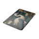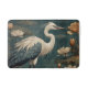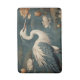 vintage av en botanisk scen med en blå kran omgiven av vita blommor