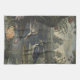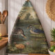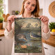 vintage av en botanisk scen med blå kranar vid en flod omgiven av vackra stora blommor