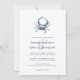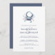Bröllopbjudan för kustnära chic innehåller en illustration av den blåa krabban med vattenfärg överst i den skyddade hamnblått, med dina bröllop-detaljer under i den klassiska marinblått. Perfekt för strand, sommar eller nautiska bröllop, särskilt i de blå krabregionerna i mellersta Atlanten, dessa bröllopsinbjudningar vid stil vid kusten går tillbaka till fast hamnblått.