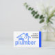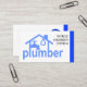 Ett helt vitt hölje med blå gräns lagrar har en kreativ blå rörformgivning ram. Ert prestigefyllda namn är över i det övre hörnet. Kortinformationen är på högerna över med en faucet-logotyp som du kan använda, placerad överst. Detta följs av ditt prestigefyllda namn, kontaktinformationen och ett sloganalternativ för att publicera dina tjänster. Ett kreativ, professionell kort för rörmokare till använda.