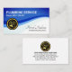 Täckningen har en snyggt blå skuggor i vatten-vågformad med kreativ med en logotyp för rörning och uppvärmning i guld som du kan använda, riva den. Precis ovanför logotypen finns namn PLUMBING SERVICE och dess kontaktuppgifter. Mot basen är ert prestigefyllda namn och en slogan som ni kan ändra på. I ett vitt omslag är logotypen guld överst följt av ditt prestigefyllda namn, kontaktuppgifter och ett sloganbildningsalternativ. Ett underbart kort för rörmokare till använda.