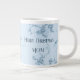 Mamma kommer att uppskatta detta vackra blå ljus mugg på en glatt blå bakgrund med texten "God jul" och "MAMMA".