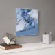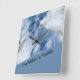 En kantig väggklocka i mörk blått, vitt och ljusblått marmor bläck färg. Utformningen är en drömmarisk romantisk och elegant med spår av guld och silver, som kustsjöspolare. Det ser ut som en marmorsten struktur och flytande lava på abstrakten samtidigt. Du kan anpassa väggklockan med din personliga beröring som ditt namn eller monogram. Den här designen passar in i perfekten i kustbostäderna och gör komen till ditt rum.