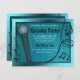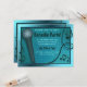 En roligt- och elpartiinbjudan som innehåller en mikrofon med musik noter. Inbjudan är underbart för en karaoke party för födelsedagar och andra firande. Inbjudan är ett glansigt blått färg med svarta accenter.