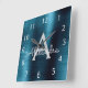 Blåmodern Elegant Metallic Monogram Namn Fyrkantig Klocka