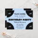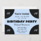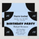 Ljusblått centrum på den svarta födelsedagsfesten inbjudan. Blått och svart ge är ett modernt utseende. Lägg till åldern eller lämna den tom - Fyll i med OSA