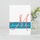 Coral och Blue Modern Wedding Investigation med ditt monogram och namn i en enkel, men ändå elegant design. ELKE CLARKE © for Monogram Gallery. (kod Hex Färg 0086a7). Visas på vit papper. Andra färg-kombinationer tillgängliga på begäran