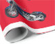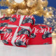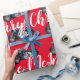 Blåa motorcyklar gör en söt mönster i en festiv röd bakgrund, perfekt för att anpassa din papprare.
