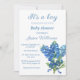 Det är en pojke! Blånätsblommor vattenfärgsmålning av Monika Howarth. Texas Bluebonnets. Nature, Blue blommigt illustration babyduschinbjudan. Anpassa den med dina detaljer.
