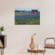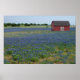 En fält av blånät och en röd lada, nära Red Oak, Texas.