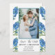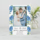 Elegant, modern, blommor, blå, land, rustik, skript, foto, spara datuminbjudningarna. Anpassa den med din information.