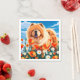 Från Sandra Miller Studio kommer denna glatta hyllning till sommarens gyllene timme. En regal Chow Chow står mitt i ett hav av poppies och vild daisy, bmaskerande i värme och stollig. Med en brinnande hållning och en lila tunga av innehåll fångar denna pulserande flagga den fredliga majoriteten av naturen och rasens själsliga charm.