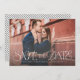 Den här typografin sparar datumet med ett övertäckt utfallsfoto med ett unikt tecken på "spara datumet". Lägg till mer information om bröllop längst bak på kortet och anpassa färg och typsnitt så att de stämmer överens med bröllop stil!