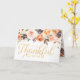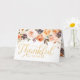 Det här Shabby Chic Floral Rose-kortet har en fin akvarell-persika- och orangekant längst upp. Färgerna som används är olivgrön, rost, persika, plommon och orange. I mitten finns stiliskt text i guld som säger "Tack för dig". Insidan har en blomsterrank på både övre och nedre delen med utrymme för att skriva ditt eget meddelande. Allt visas på en krispig vit bakgrund. Detta kort koordinerar med Give Thanks Floral Pumpkin-kollektionen. Matchande kuvertfoder finns också tillgängliga. *Guldbokstäverna är inte folie*