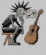 En robot med spjälkhår och ett förvirrat uttryck sitter på en avföring, och funderar över var plugin-programmet ansluter på en akustisk gitarr. Tankbubblan ovanför huvudet innehåller en gitarr-kontakt och frågetecken som tyder på övervägande och förvirring.