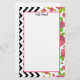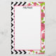 Brevpapperpapper som presenterar en design som består av rosa ros och svart sicksack.