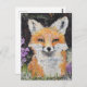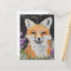 Blandade medier av Cute Red Fox Lila blommor Vykort