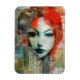 Ett blandat mediesamling med ett rödhårigt dam som huvudfokus AI genererade konst