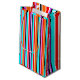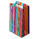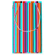 Den här presentpåsen har en enkel utformning av lodrät rand med varierande tjocklek i rött, orange, lila, svart, ljusblå och vitt.