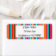 Dessa returetiketter har en enkel utformning av lodrät rand med varierande tjocklek i rött, orange, lila, svart, ljusblått och vitt.